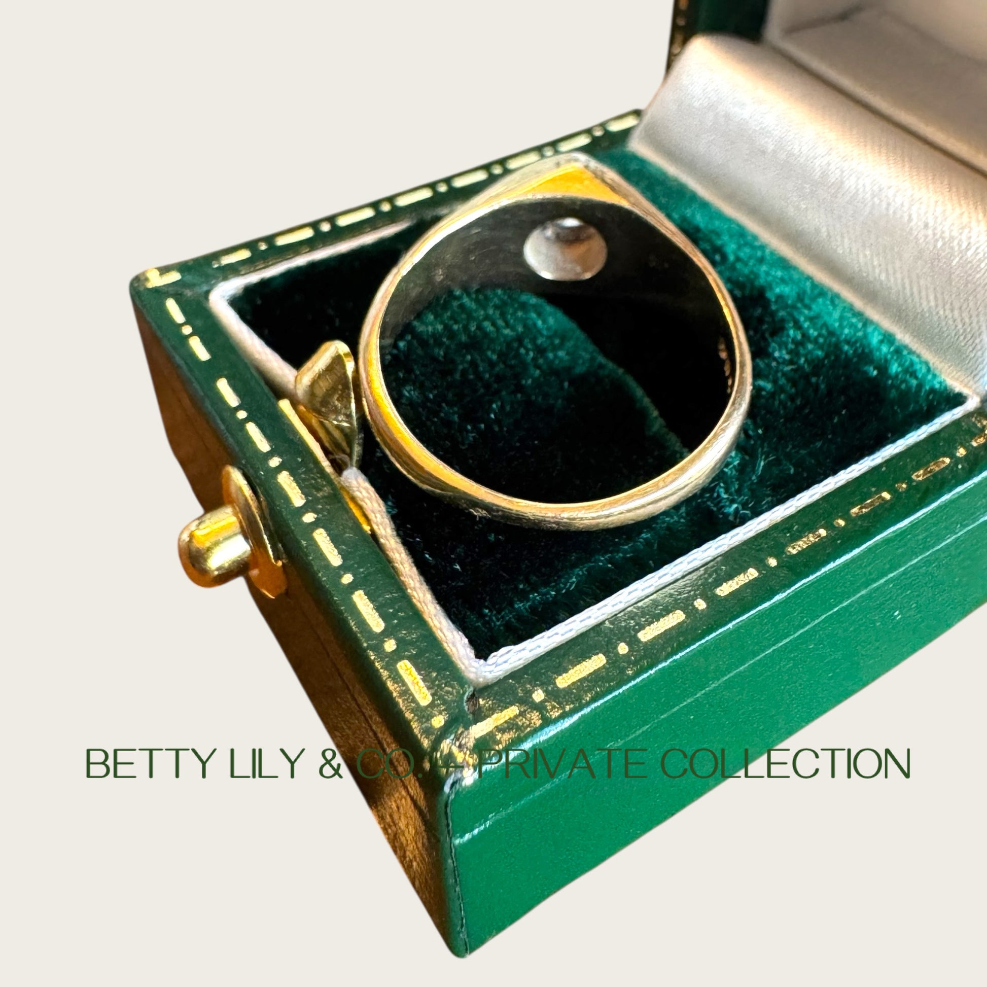 Whether worn as a pinky ring, engagement ring, or a collector’s treasure, this piece captures the strength and refinement of the Art Deco period, making it a significant addition to any vintage jewelry archive.