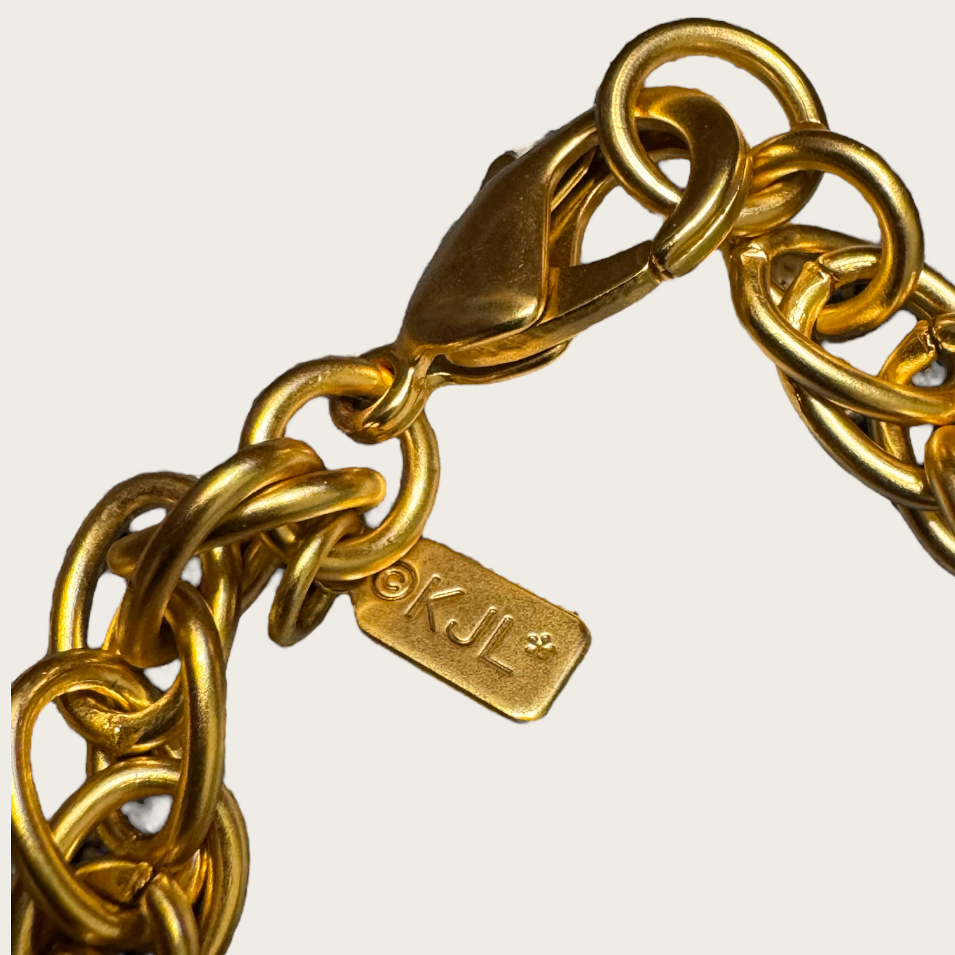 This piece embodies Kenneth Jay Lane’s iconic style: bold, opulent, and unapologetically chic. The design is reminiscent of the designer’s late 20th-century revival of Byzantine and Moroccan influences — timeless statement jewelry made to be seen.