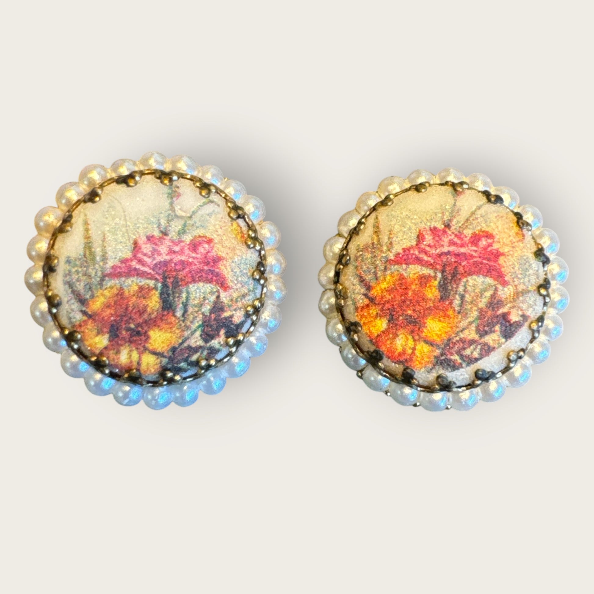 • Earrings: Approx. 1⅛” diameter, clip-backs