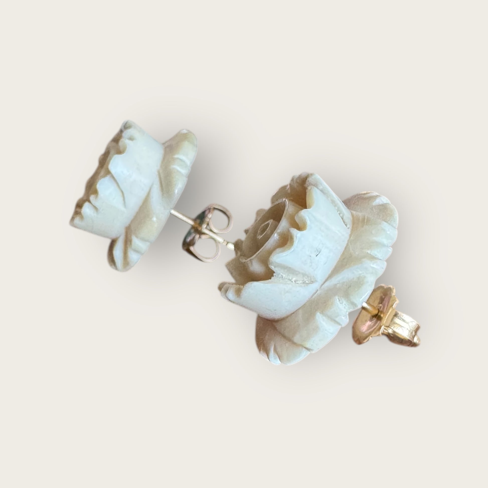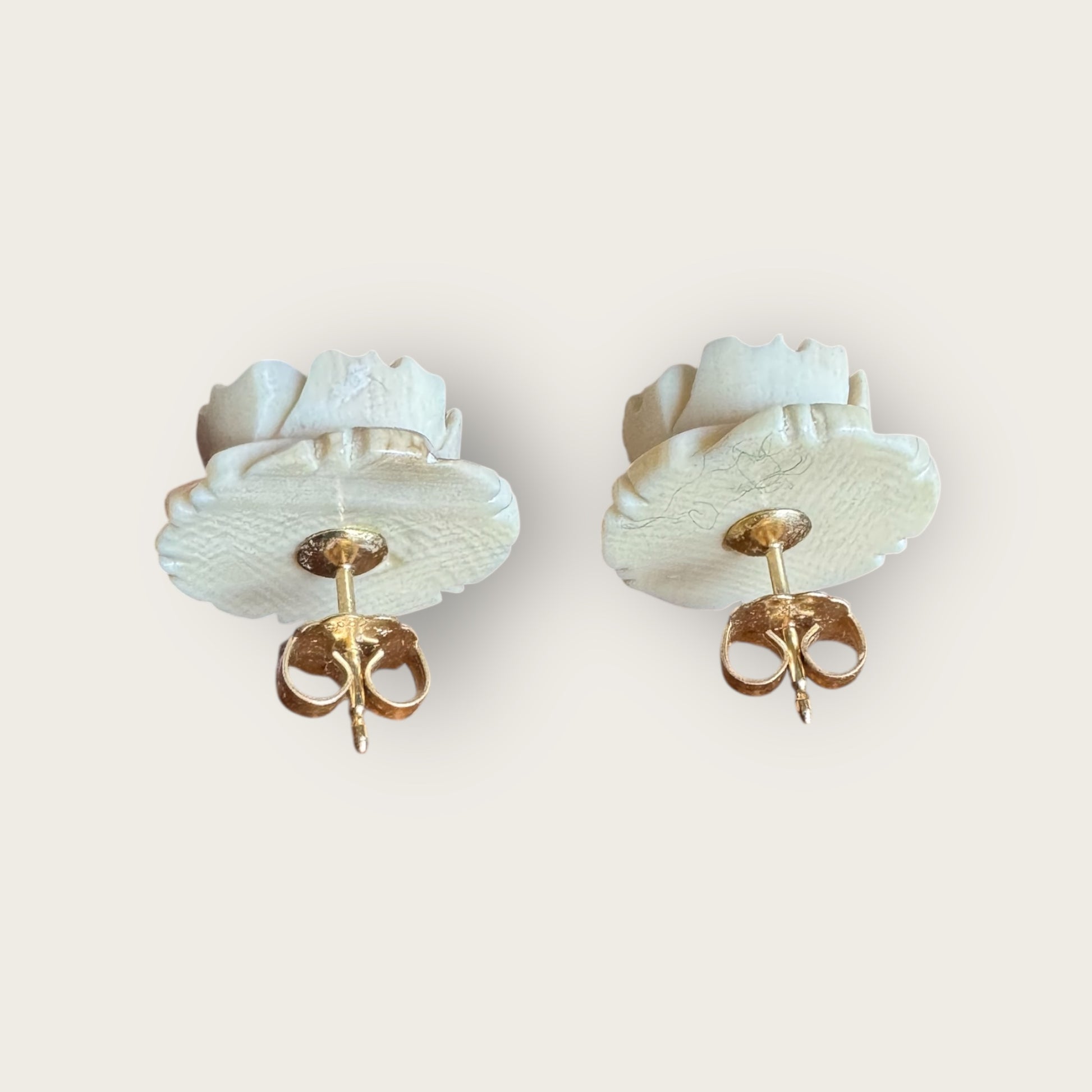 Vintage 14K Gold Carved Bone Rose Stud Earrings