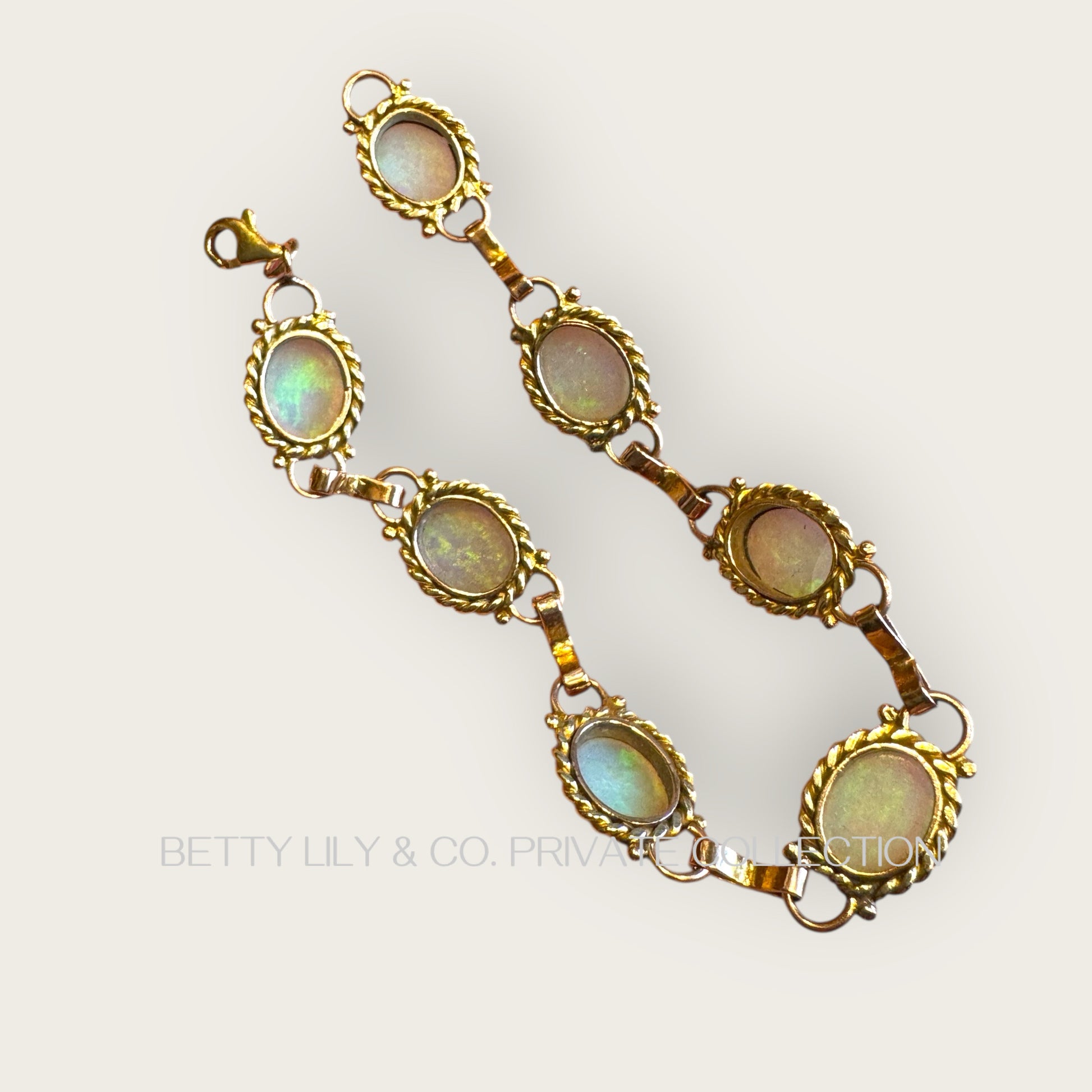 Vintage 14K Gold Natural Opal Linked Station Bracelet | Private Collection