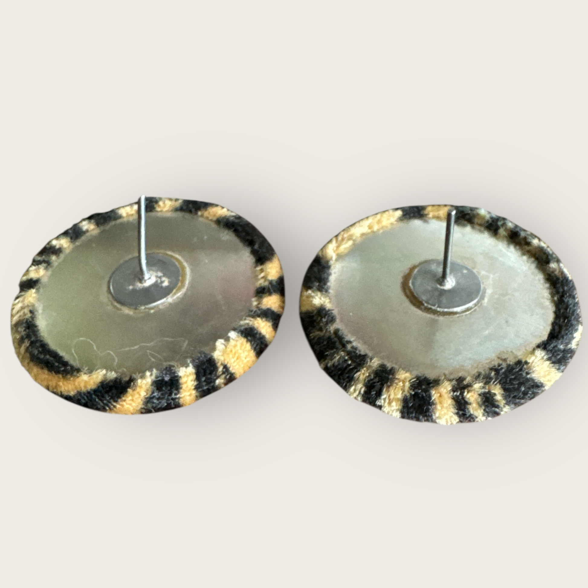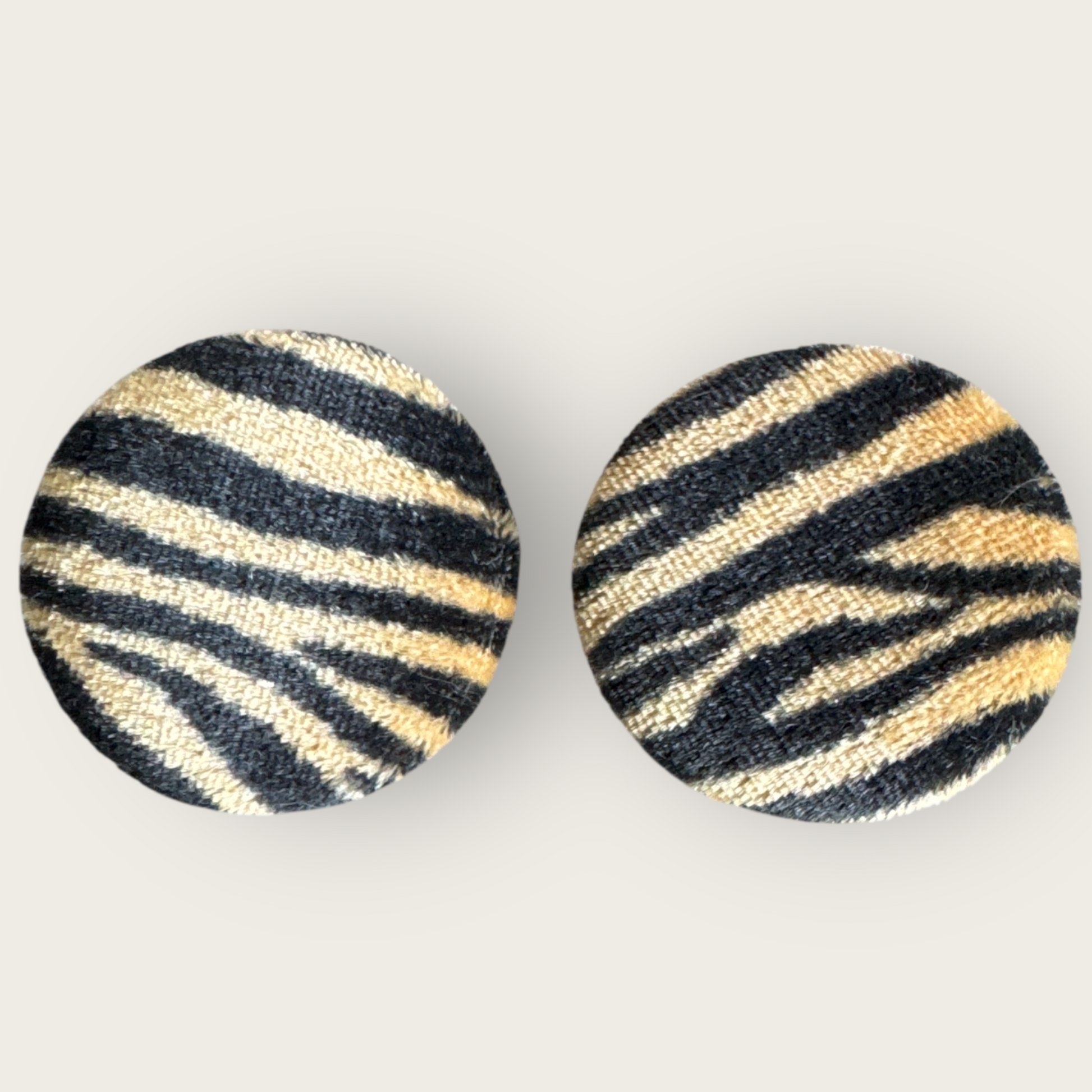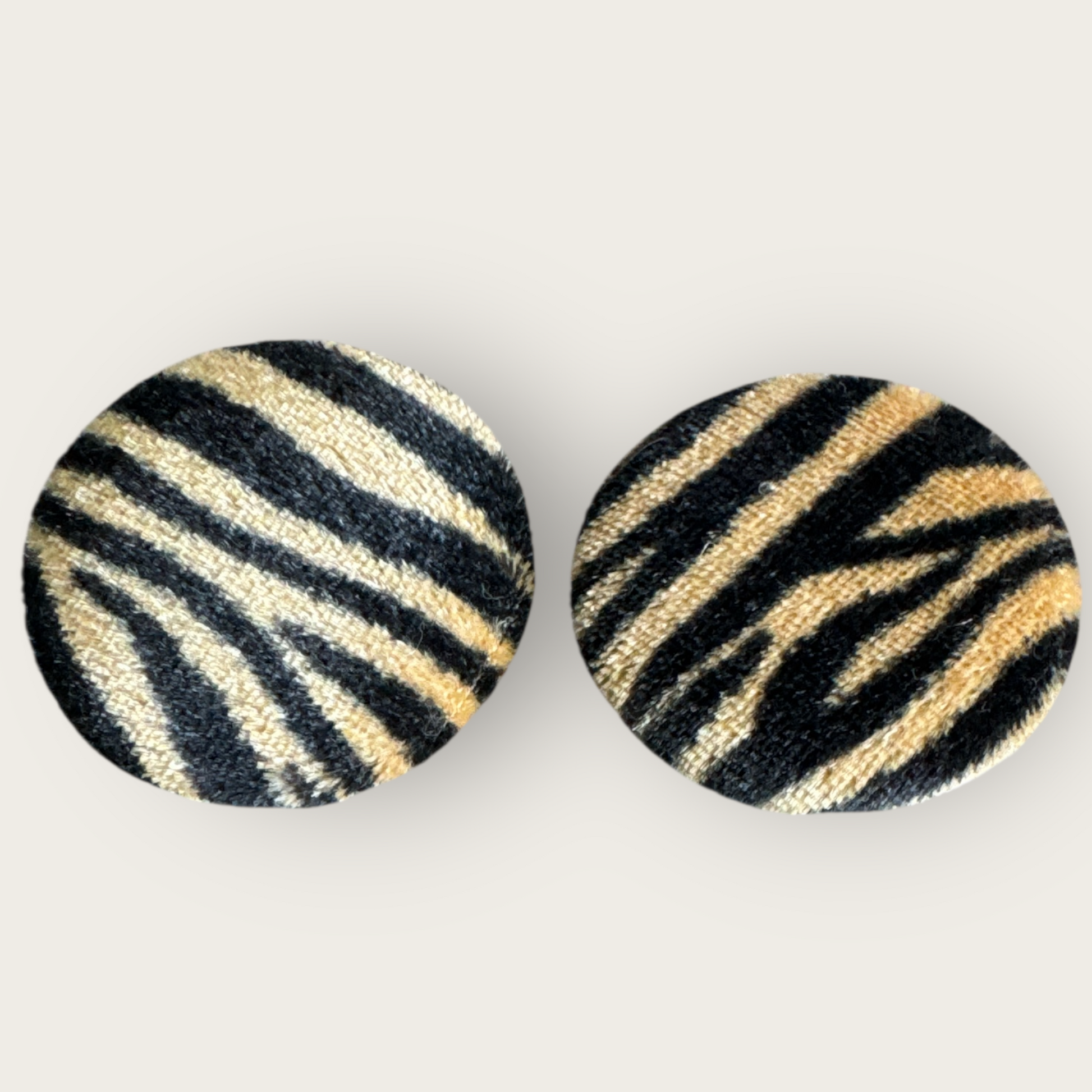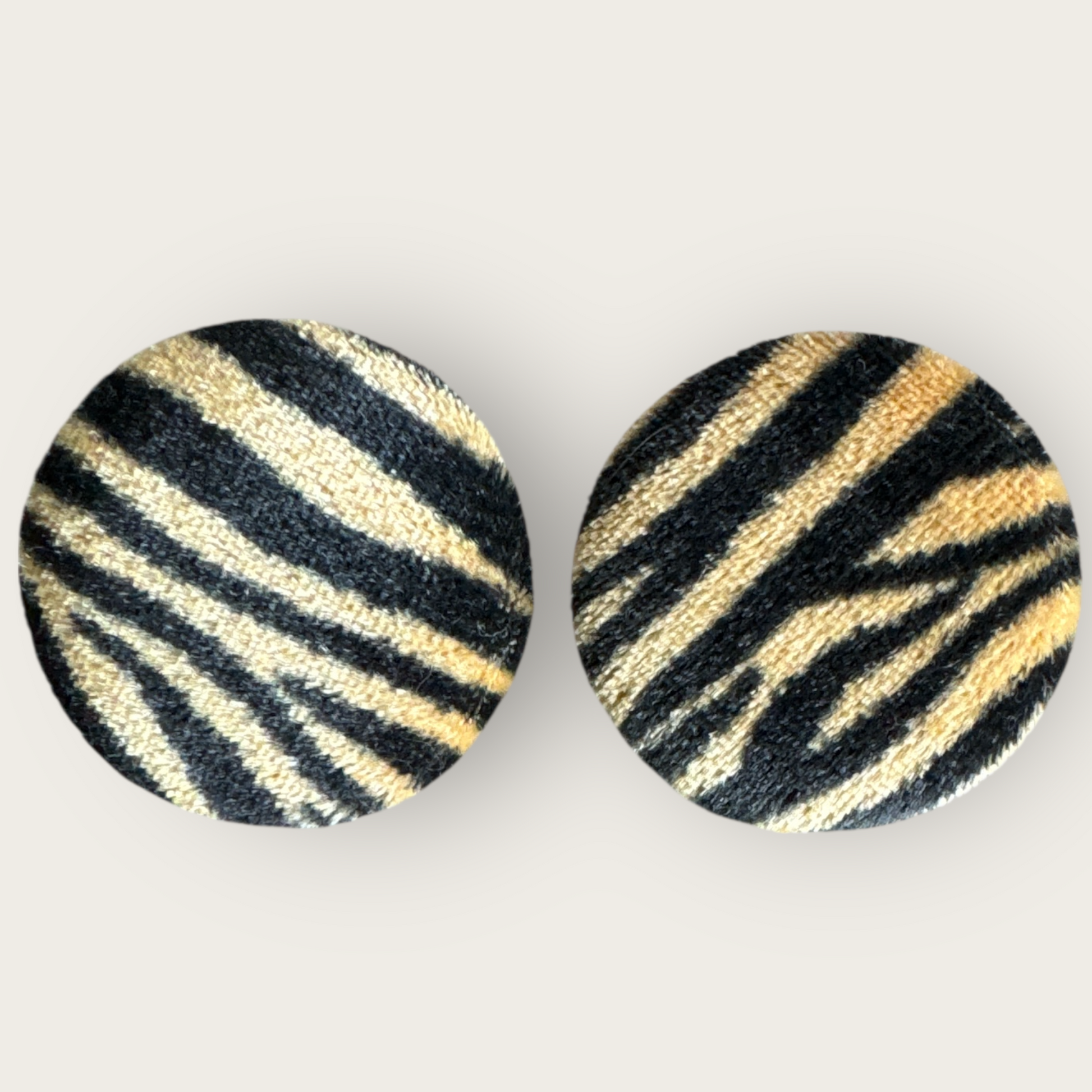 Vintage 1990s Zebra Print Round Fabric Earrings – Post Back Studs