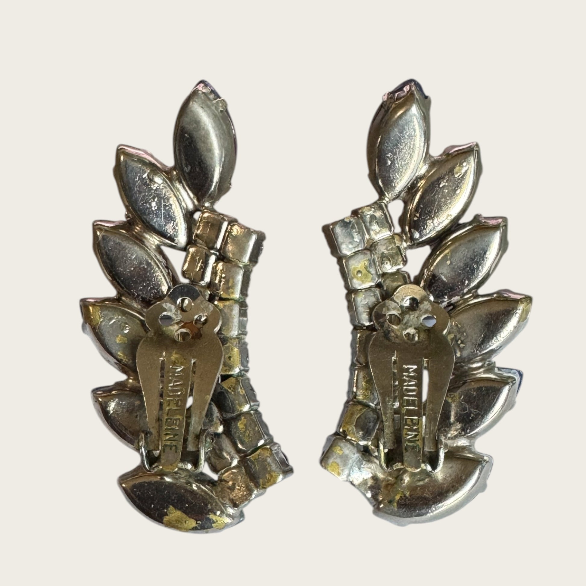 Please note: these earrings are not in perfect condition. The backs show plating wear, tarnish, and scattered verdigris. While the fronts present beautifully when worn, collectors should expect normal age-related wear on the reverse.
