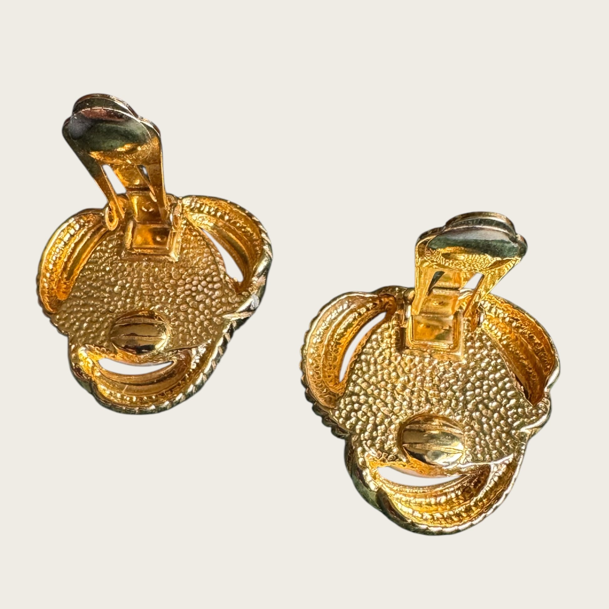 Vintage Sara Coventry Swirl Clip-On Earrings – Gold-Tone with Faux Pearl Centers