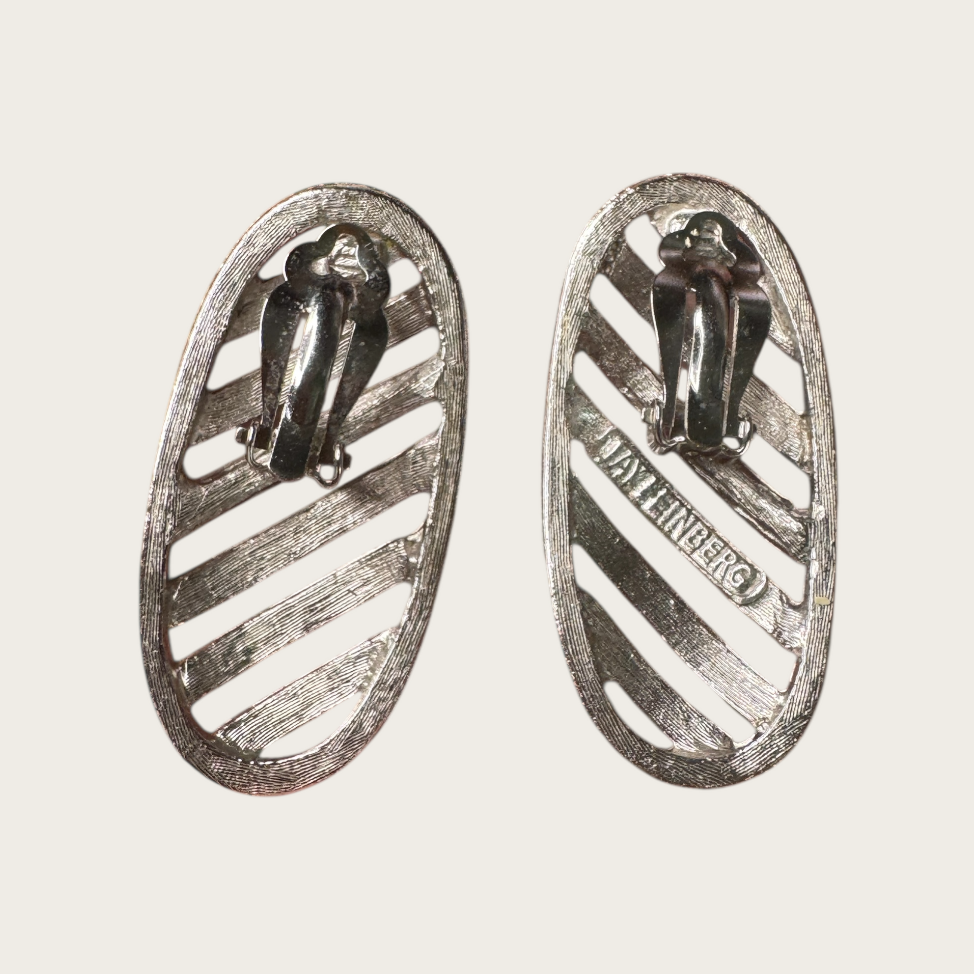 Vintage Signed JAY FEINBERG Silver-Tone Striped Elongate Clip-On Earrings
