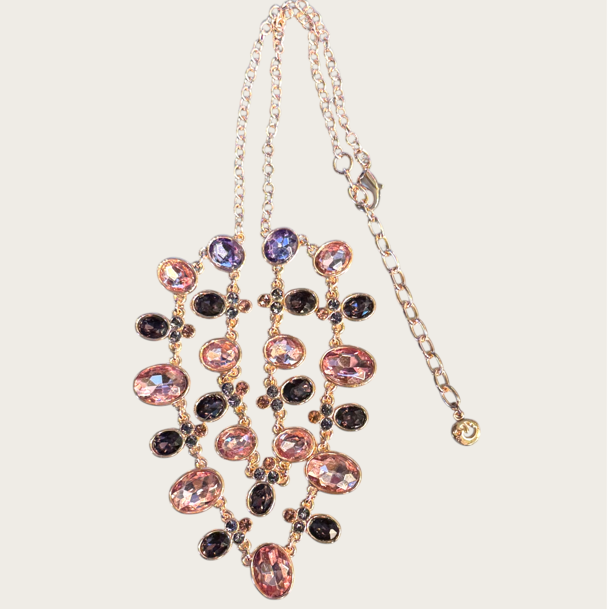 Vintage Swarovski Blush Pink, Amethyst & Slate Crystal Necklace Rose-Gold Tone Foiled-Back Brilliance